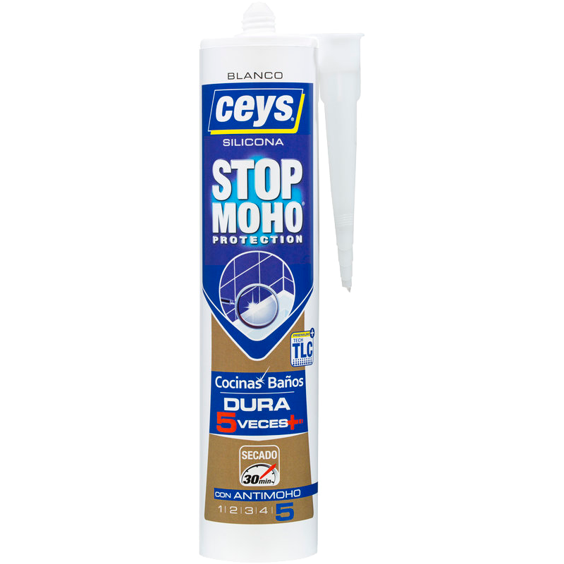 Silicona stop para moho. Silicona superior para baños y cocinas únicas gracias a la combinación de 2 exclusivas propiedades: tecnología TLC, que evita que el moho y la suciedad se deposite sobre la silicona, con lo que no ennegrece y permanece limpia y sin moho 5 veces más tiempo que...