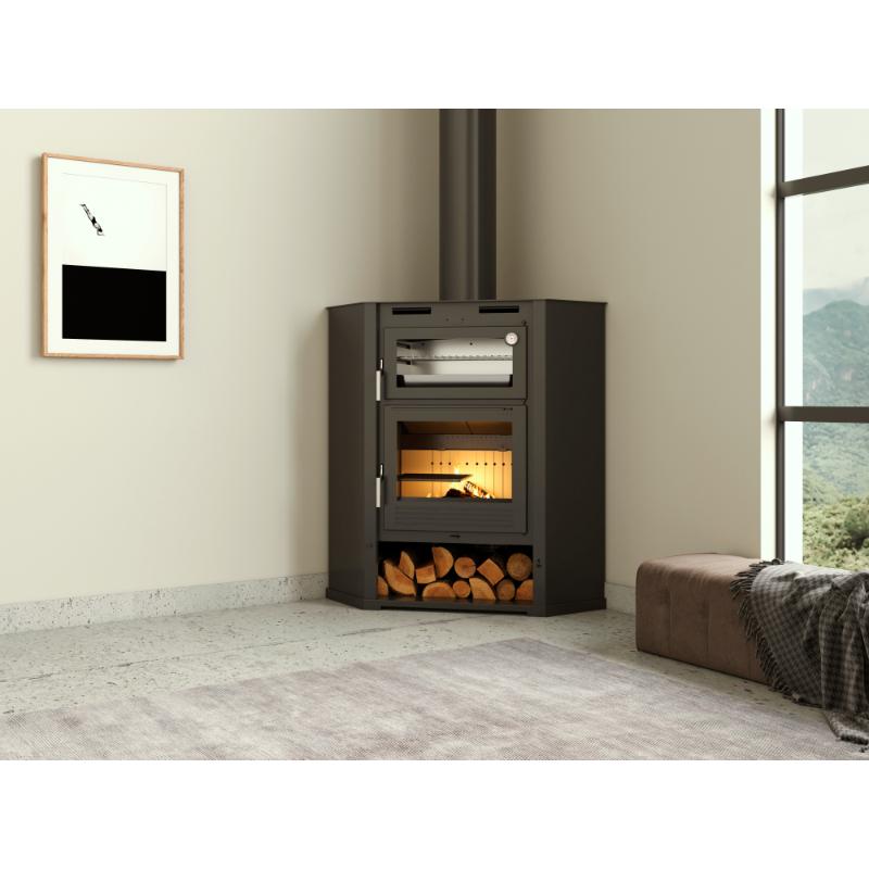 Estufa de leña de esquina con turbinas y horno FM M107RT