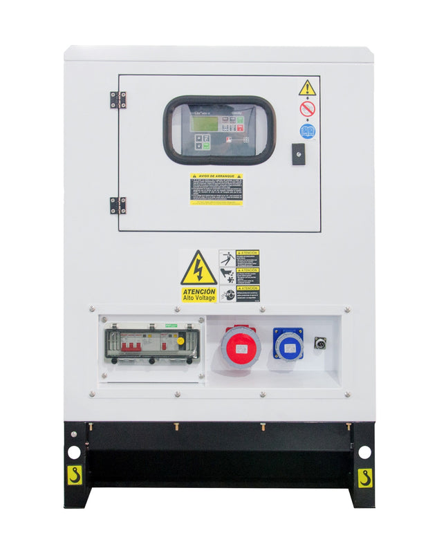 Generador 1500 rpm trifásico insonorizado DG14KSE Botones de parada de emergencia (uno fuera del grupo y otro en el panel de control). Arranque manual o por contacto libre de tensión (ATS, programador, etc). Cuerpo de acero galvanizado y pintado para proteger contra el óxido. Puertas anchas para un fácil mantenimiento...