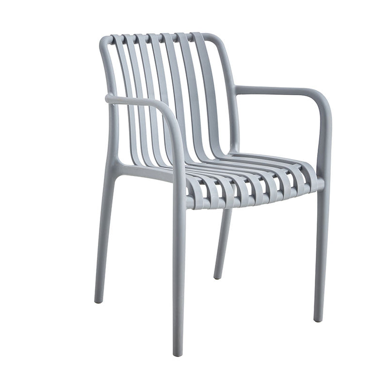 La silla Greta destaca por su diseño moderno y funcional. Está fabricada en plástico con protección UV, está diseñada para soportar la exposición al sol sin perder su color. Gracias a su diseño apilable, ocupan muy poco espacio cuando no se están usando. Medidas de 55 x 58cm y altura de 81cm.