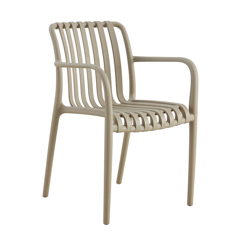 Disponible en 4 colores a elegir: beige, negro, burdeos y gris. Silla de plástico apilable para jardín serie Greta La silla Greta destaca por su diseño moderno y funcional. Está fabricada en plástico con protección UV, está diseñada para soportar la exposición al sol sin perder su color. Gracias a...