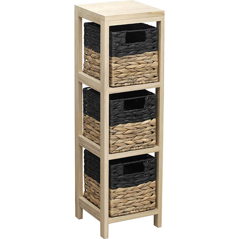 Mueble auxiliar en madera de color negro con 3 estantes, cada estante incorpora una cesta para que puedas organizar tus objetos. Se sirven 2 unidades.