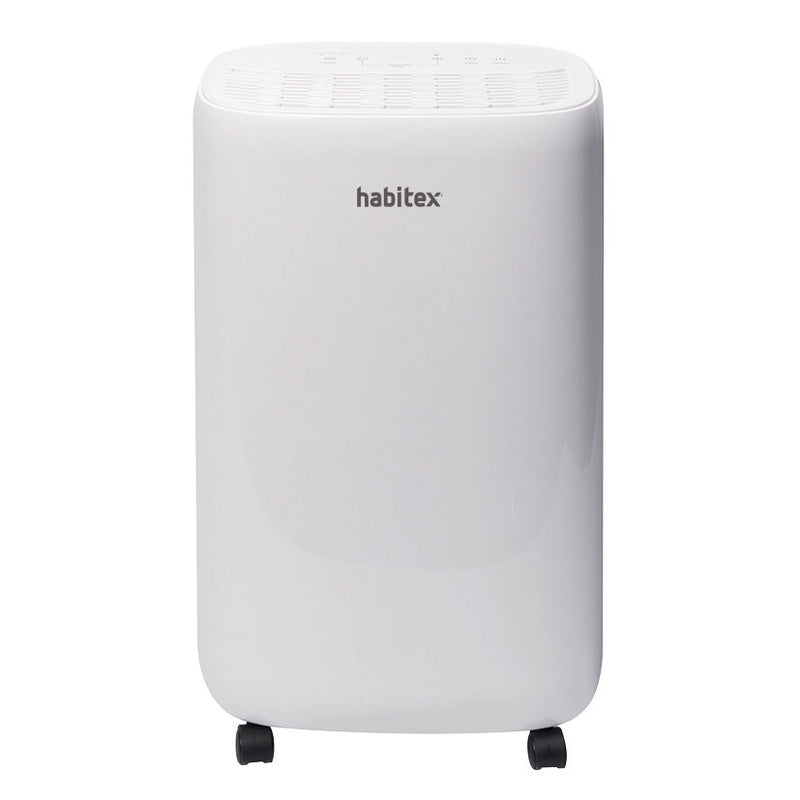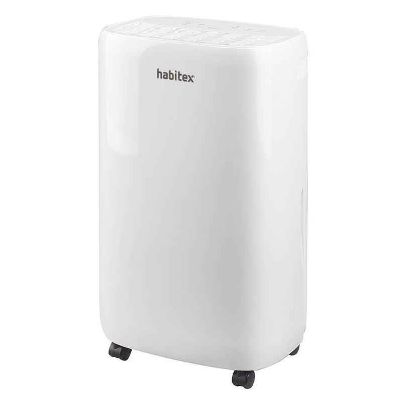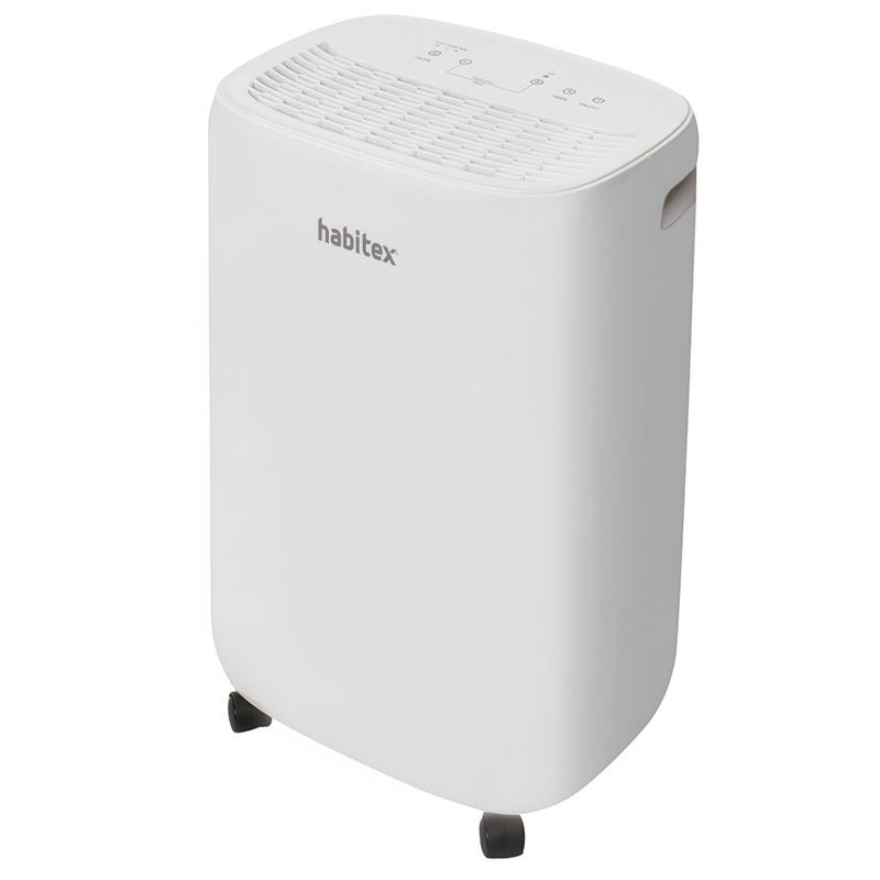 El deshumidificador HABITEX H10001 elimina hasta 10 litros de humedad por día, siendo ideal para habitaciones de hasta 25 m². Dispone de sistema protector anticongelación, selector del porcentaje de humedad, temporizador de 24 horas y un práctico display LED. Su depósito de 4 litros y caudal de aire de 160 m³/h aseguran un funcionamiento eficaz y continuo. Cuenta con ruedas para facilitar su movilidad, nivel sonoro máximo de 42 dB y utiliza refrigerante ecológico R290. Dimensiones: 29,5x21,5x53 cm.