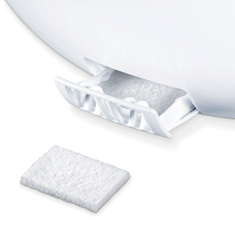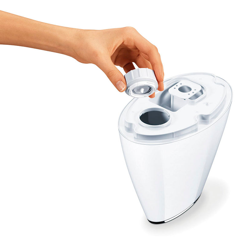 El humidificador BEURER tiene un diseño atractivo y es apropiado para estancias de hasta 20 m2. Ayuda a mantener los niveles de humedad regulando la cantidad de vapor emitida al aire gracias a la tecnología ultrasónica. Podrás hacer que tu hogar sea más acogedor poniendo tus esencias favoritas en la bandeja que incorpora, de este modo, darás un toque personal a tu hogar y relajante. El humidificador cuenta con modo noche: funcionamiento silencioso y sin luz para un mayor confort para dormir, depósito de agua extraíble, LED de control: blanco y azul que indicarán distintos niveles de nebulización y el LED rojo que indica cuando el depósito del agua está vacío. Además dispone de un sistema de desconexión automática para una mayor seguridad e incluye 15 pastillas aromáticas y un cepillo de limpieza para su mantenimiento. Viene presentado en una caja y tiene 3 años de garantía.