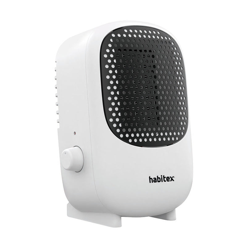 Mini calefactor cerámico HABITEX con potencia de 500 W. Diseño compacto y silencioso, ideal para espacios pequeños. Cuenta con regulador de potencia y protección contra sobrecalentamiento para mayor seguridad. Está disponible en dos colores a elegir. Tiene 3 años de garantía y viene presentado en una caja.