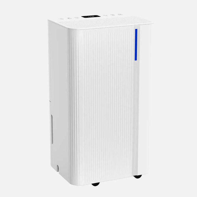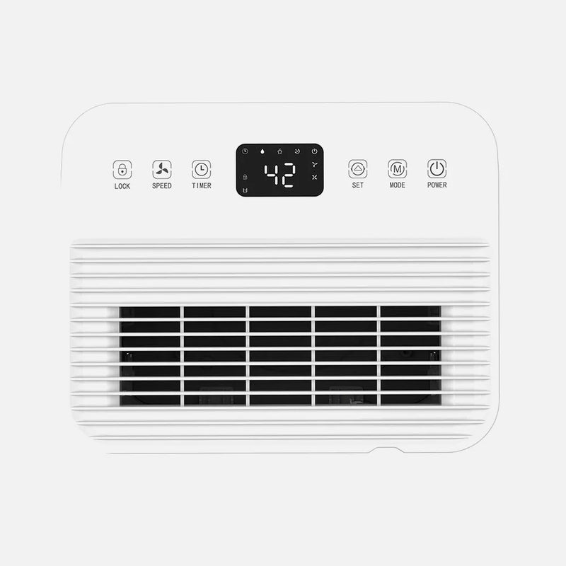 Posee una potencia de 210 vatios para deshumidificar 10 litros/día, eliminando la humedad, el moho y la condensación de agua en interiores. Ayuda a mejorar la calidad del aire. Posee un filtro anti polvo de carbón activo, devuelve un aire libre de partículas, bacterias, olores y enfermedades. Está equipado con un depósito de 2 litros que apaga el deshumidificador automáticamente cuando está lleno, para no ocasionar desbordamientos y aportando un gran ahorro de energía. Tiene tres modos inteligentes de funcionamiento: normal, secado de ropa y sueño, que disminuye el sonido y elimina el pitido de aviso de llenado para no molestar en horas de descanso. Funciona con gas refrigerante R290, de manera segura y eficiente, ayudando a proteger el medio ambiente. Acelera el secado natural de la ropa en interiores en su modo secado de ropa recogiendo toda la humedad y ahorrando tiempo y energía sustituyendo a la secadora. Cuenta con indicador LED para la humedad del ambiente, cambia de color entre rojo, verde y azul. Cuenta con temporizador para programar su funcionamiento de 1 a 24 horas desde su panel de control táctil y pantalla digital. Con sistema anti congelación. Tiene también un filtro de aire que evita la entrada de partículas de gran tamaño y lo hace un electrodoméstico seguro para los niños. Presenta unas dimensiones de 45,5x24,7x19,8 centímetros. Con cuatro ruedas que hacen fácil su desplazamiento de una habitación a otra.