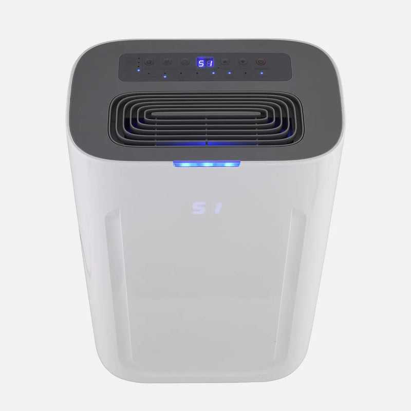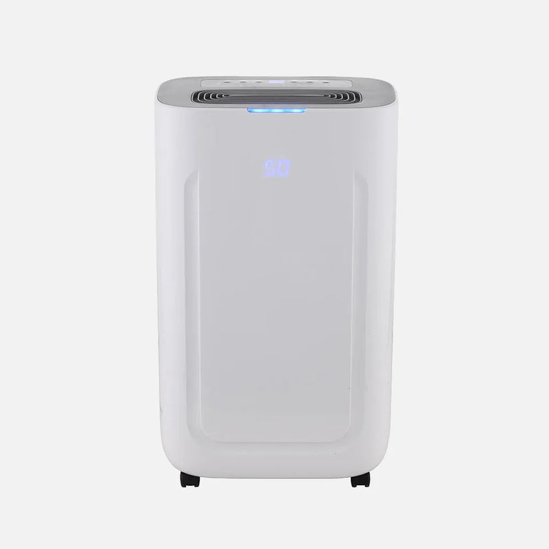 Posee una potencia de 320 vatios para deshumidificar 20 litros/día, eliminando la humedad, el moho y la condensación de agua en interiores. Ayuda a mejorar la calidad del aire. Cuenta con un filtro anti polvo de carbón activo que devuelve un aire limpio de partículas, bacterias y olores. Está equipado con un depósito de 6,5 litros que apaga el deshumidificador automáticamente cuando está lleno para evitar desbordamientos. Tiene tres modos inteligentes de funcionamiento: normal, secado de ropa y sueño, que disminuye el sonido para no molestar en horas de descanso. Cuenta con una luz de ambiente de 3 colores: rojo, verde y azul con memoria de color. Funciona con gas refrigerante R290 de manera segura y eficiente, ayudando a proteger el medio ambiente. Acelera el secado natural de la ropa en interiores en su modo secado de ropa recogiendo toda la humedad y ahorrando tiempo y energía sustituyendo a la secadora. También incluye temporizador para programar su funcionamiento de 1 a 24 horas, panel de control táctil, sistema anti congelación y un filtro de aire que evita la entrada de partículas de gran tamaño y lo hace un electrodoméstico seguro. Presenta unas dimensiones de 57x34x24 centímetros. Con ruedas y asa en su estructura que hacen fácil su desplazamiento de una habitación a otra. Color blanco con parte superior gris.