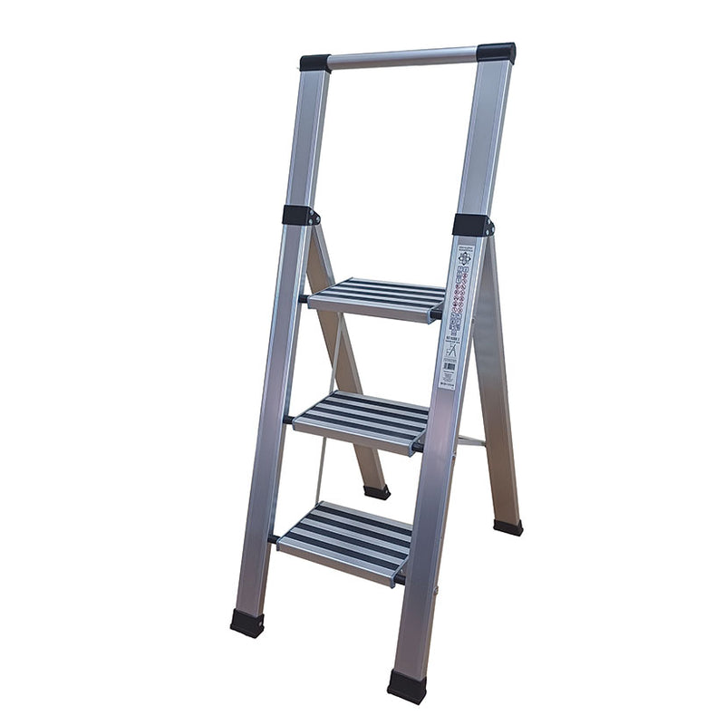 Aluminio. Plegable. Extra ligero y resistente. Peldaños anchos 28x18 cm. Antideslizante. Peso máx. 150 kg.