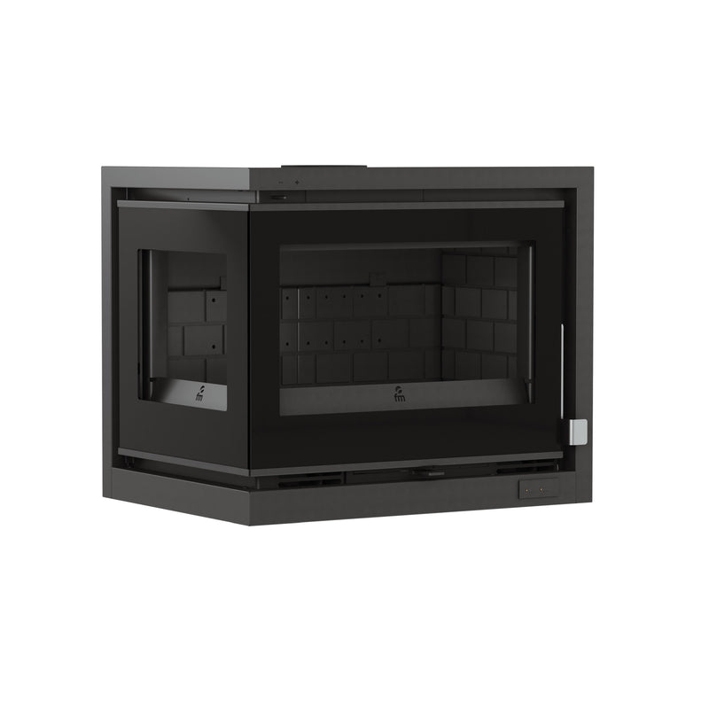 Ideal para calentar su hogar. Presenta un diseño elegante, que se adapta a cualquier espacio. Está pensada para encastrar en esquinas, tiene un cristal en su lateral izquierdo. Alta eficiencia y bajas emisiones de CO2 gracia a su sistema de doble combustión. Cumple la normativa EcoDesign 2022. Sus turbinas mejoran el flujo de aire y hacen que la leña arda a una mayor temperatura. Cristal serigrafiado en frontal y lateral izquierdo. Puerta de una pieza en forma de L.