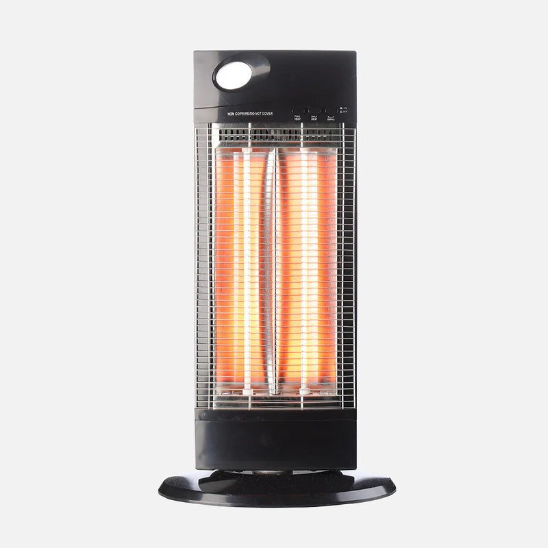 En color negro. Realizada en metal, policarbonato, cristal y ABS. Equipada con 1000 vatios máximas de potencia repartidas en sus dos tubos de carbono, para ajustar entre las dos potencias de calefacción, 500 vatios y 1000 vatios, dependiendo de la que mejor se ajuste a sus necesidades. La tecnología de fibra de carbono hace que la transmisión del calor sea rápida, efectiva y uniforme para pequeños espacios, con un bajo consumo. Con su función oscilante, podrá redirigir el ángulo de calor a la zona de la habitación que desee calentar con mayor intensidad. Viene con sistema Antivuelco y una rejilla de protección. ideal para comedores, dormitorios, estudios y zonas de trabajo, se presenta con un diseño moderno de fácil manejo y fácil de transportar, gracias a su tamaño y a el asa que contiene en su estructura compacta. Tiene unas dimensiones de 70x38x26 centímetros.