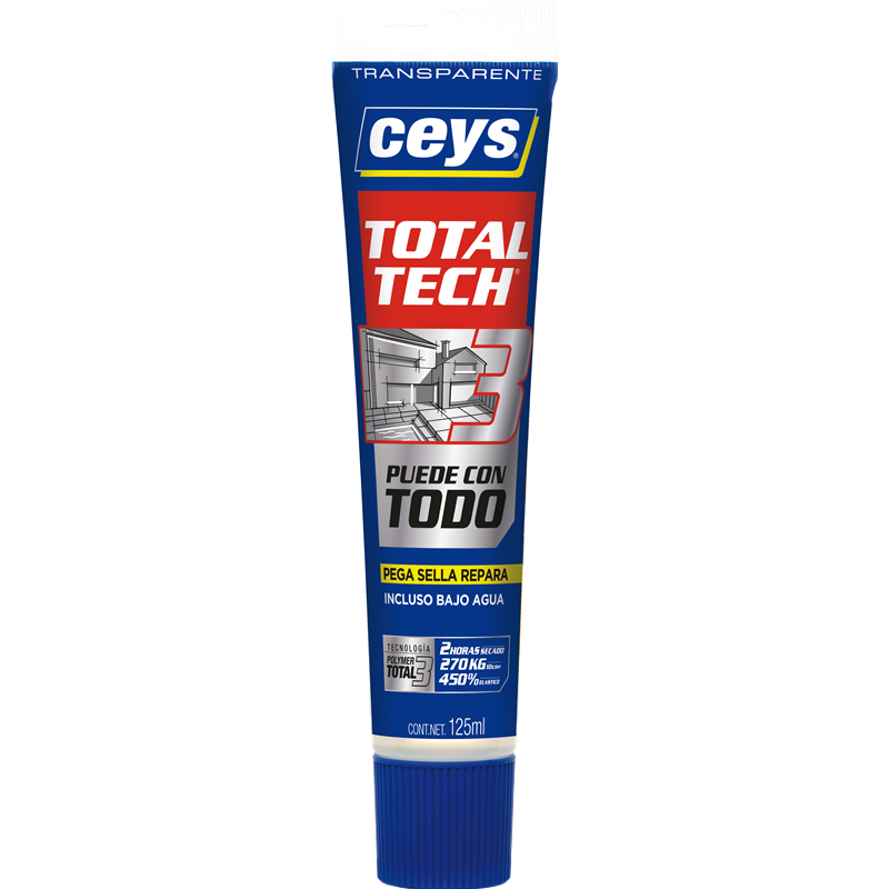 Silicona total tech transparente. Es una masilla híbrida monocomponente de alta polivalencia. Presenta índices de adherencia superiores a los de un poliuretano y la elasticidad y hermeticidad de una silicona. Pega, sella y repara todo tipo de materiales en interior y exterior, incluso bajo el agua. Su fórmula es especial...